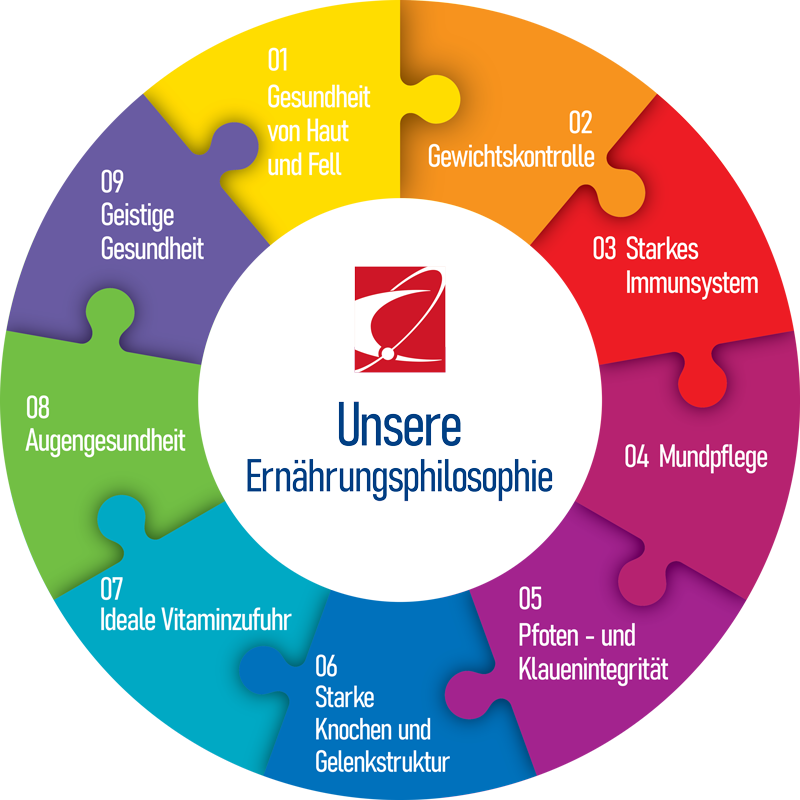 Um allen Ernährungsbedürfnissen unserer Tierfreunden gerecht zu werden, bieten unsere Produkte, die in einer breiten Palette von Trockenfutter bis Nassfutter mit Dosen- und Beutelalternativen, von Belohnungsriegeln bis zu probiotischen Premixen angeboten werden, „à la Carte“-Möglichkeiten mit ihre perfekten Formeln und einzigartigen Inhaltsstoffe.